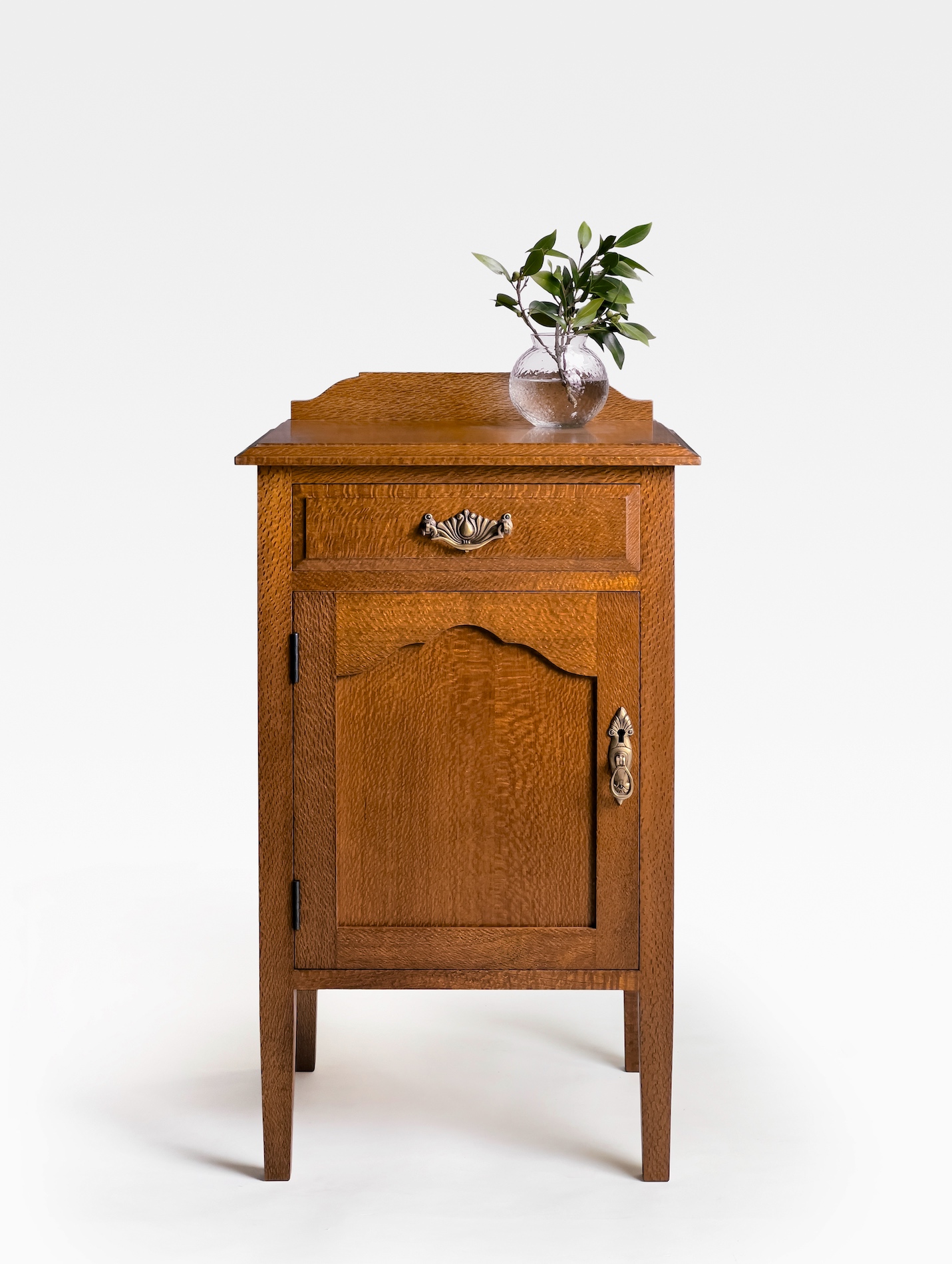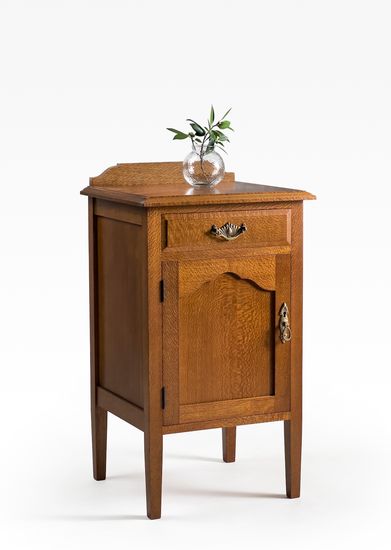 Shimmering cuts of highly figured Quartersawn Silky Oak are featured throughout the cabinet.